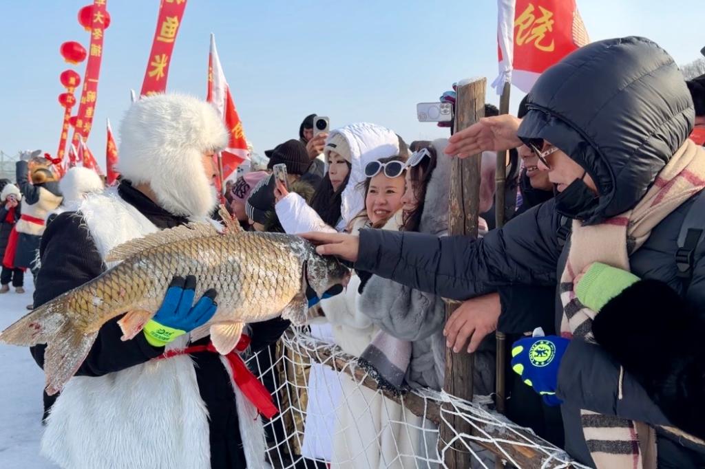 “这是我第一次参加冬捕节,不但品尝了美味的鱼肉馅饺子,刚才还摸了摸鱼头,希望能沾沾喜气。”杭州游客许岩静笑着说,这份触手可及的幸福,是节庆里最朴素的真意。