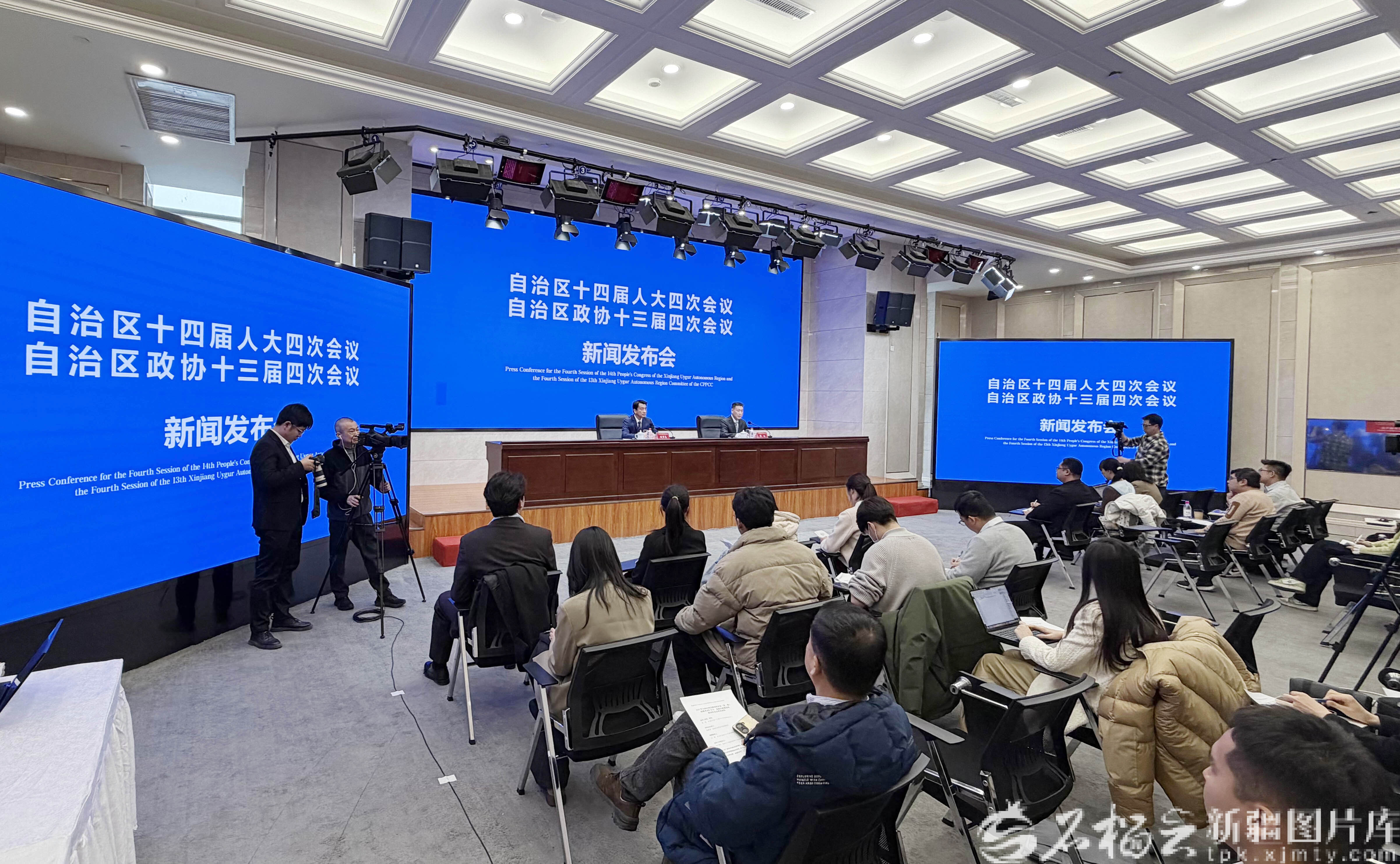 1月25日,2026年新疆维吾尔自治区两会新闻发布会(第1场)在新疆两会新闻中心举行。图为新闻发布会现场。