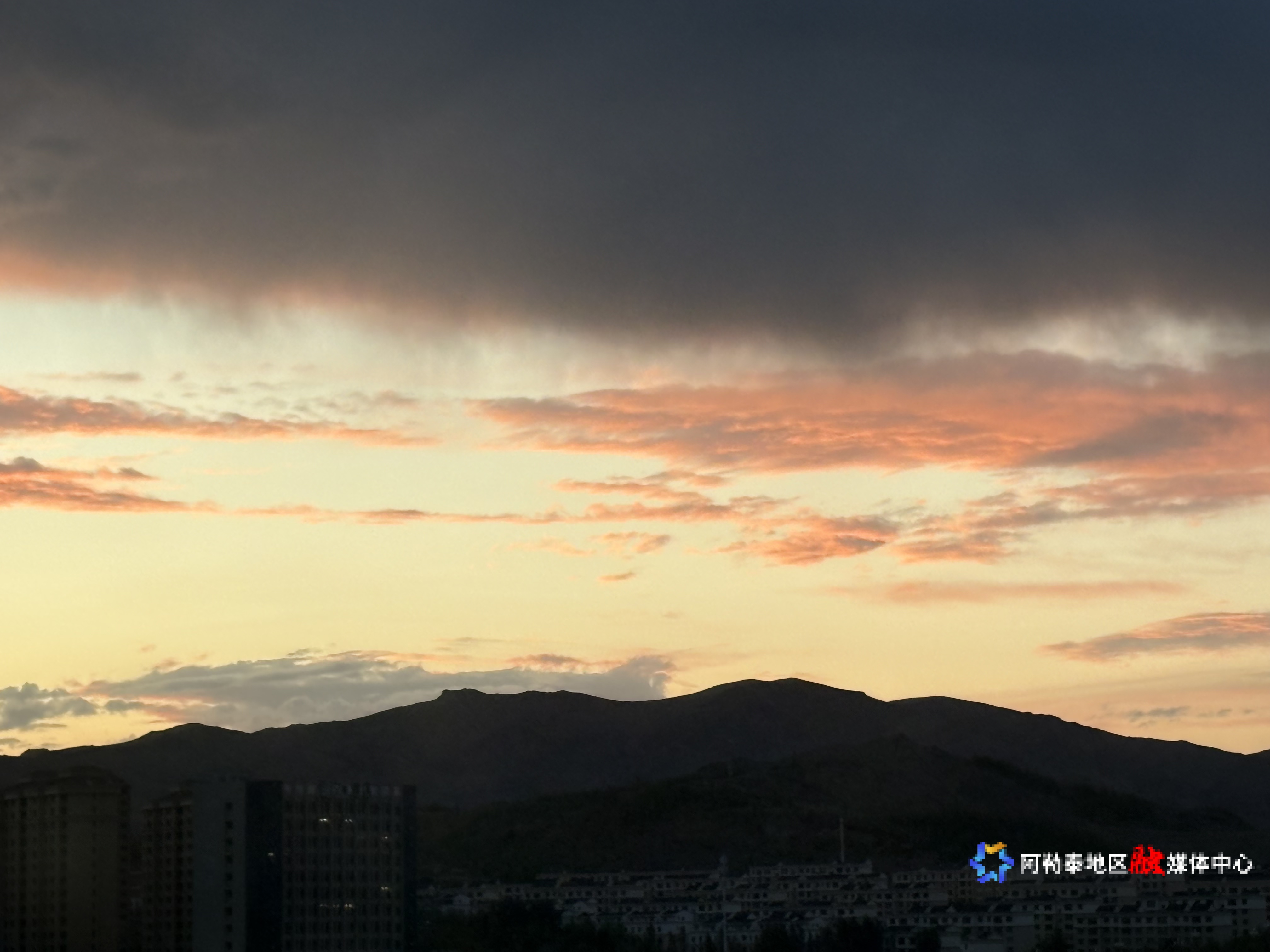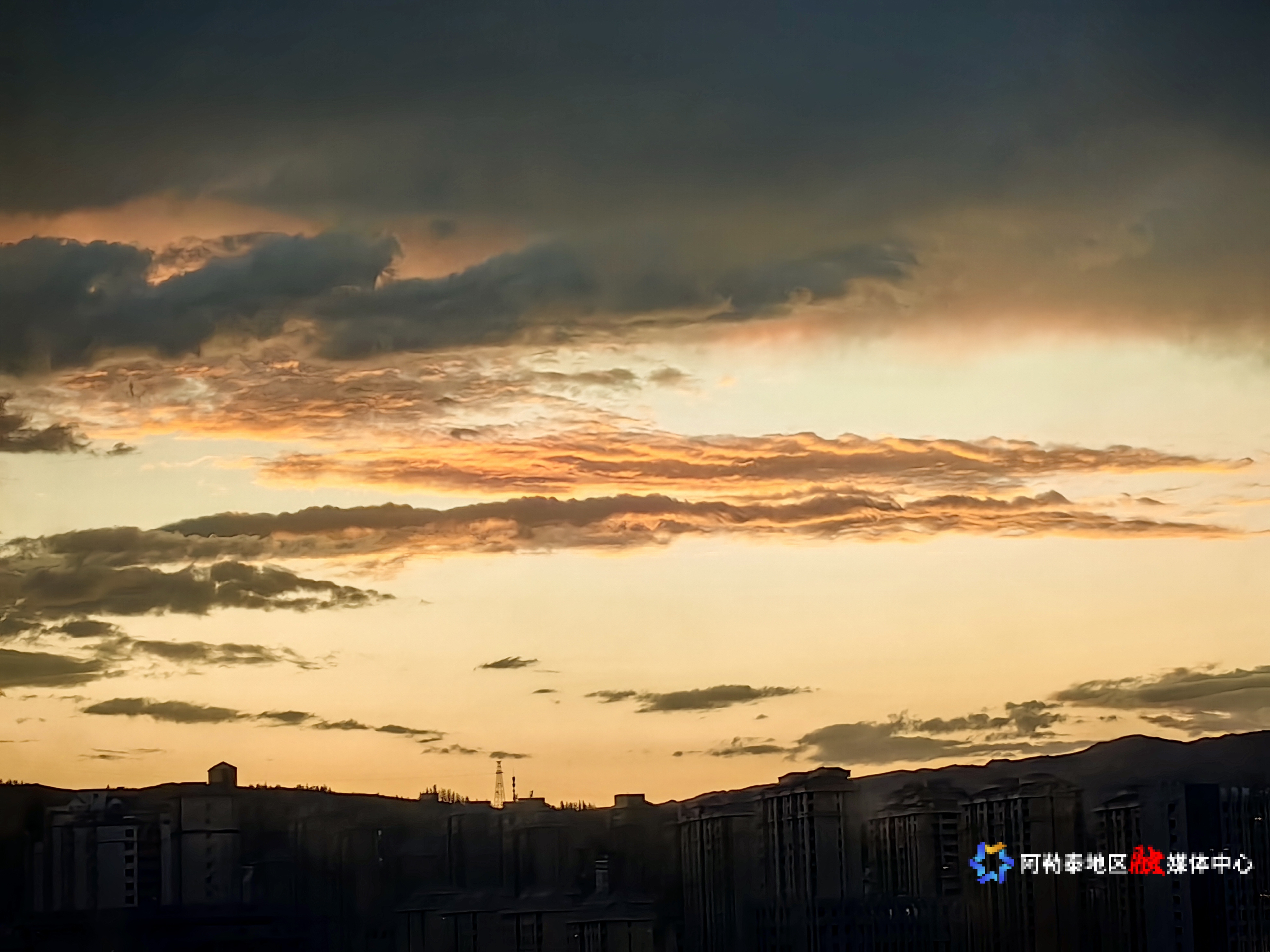 阿勒泰新闻网-阿勒泰地区融媒体中心(记者 杨玮璇)当最后一缕日光掠过阿勒泰的山峦,天空便成了自然挥毫的画布。橘色如融化的金箔铺满西天,从浅橙渐次晕染成炽烈的橙红,仿佛天地间燃起一场温柔的火焰。那些流动的云絮被镀上金边,边缘泛着透亮的绯红,像是被巧手裁成的绸缎,在晚风里轻轻舒展。