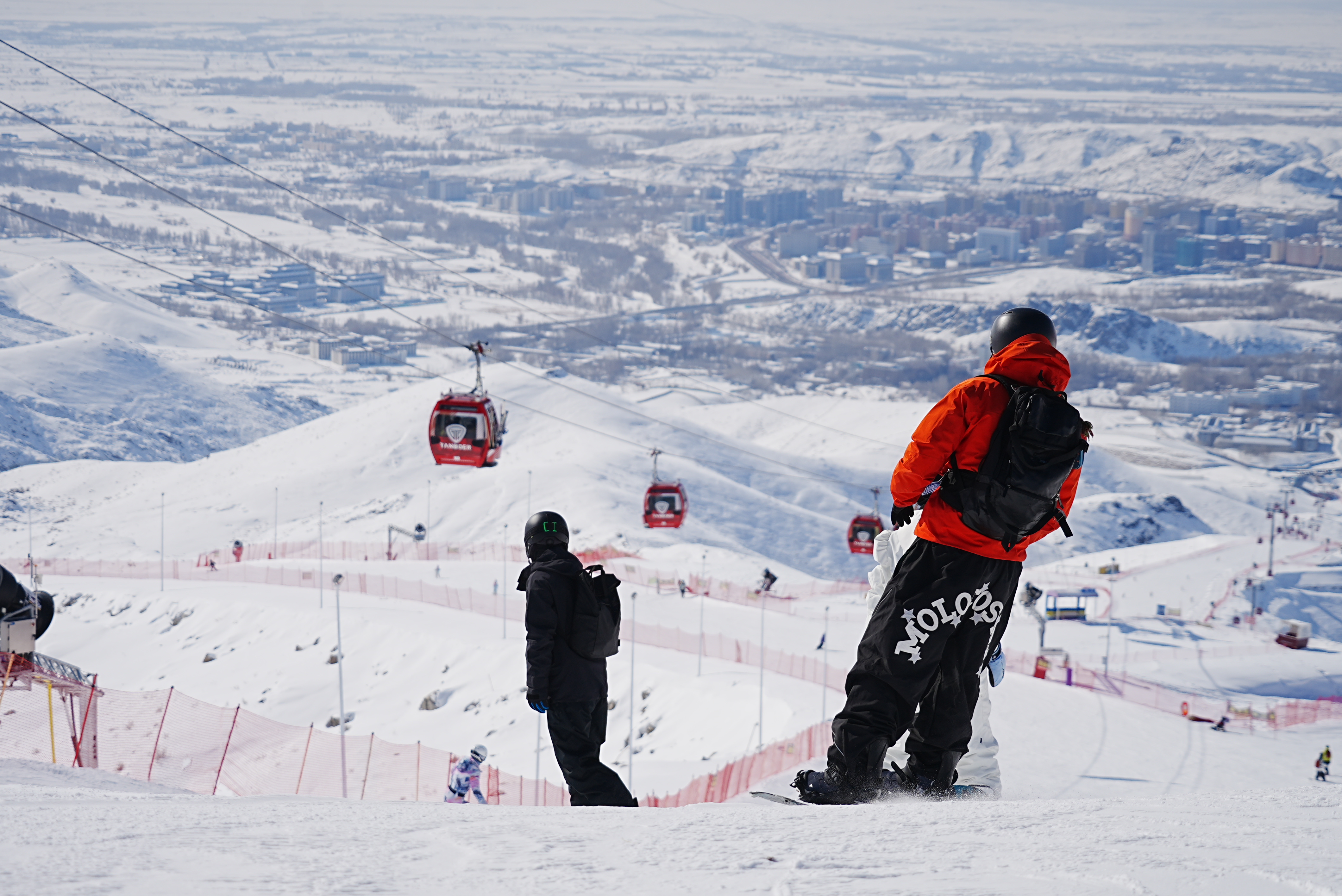 滑雪爱好者在阿勒泰将军山国际滑雪度假区畅滑粉雪。