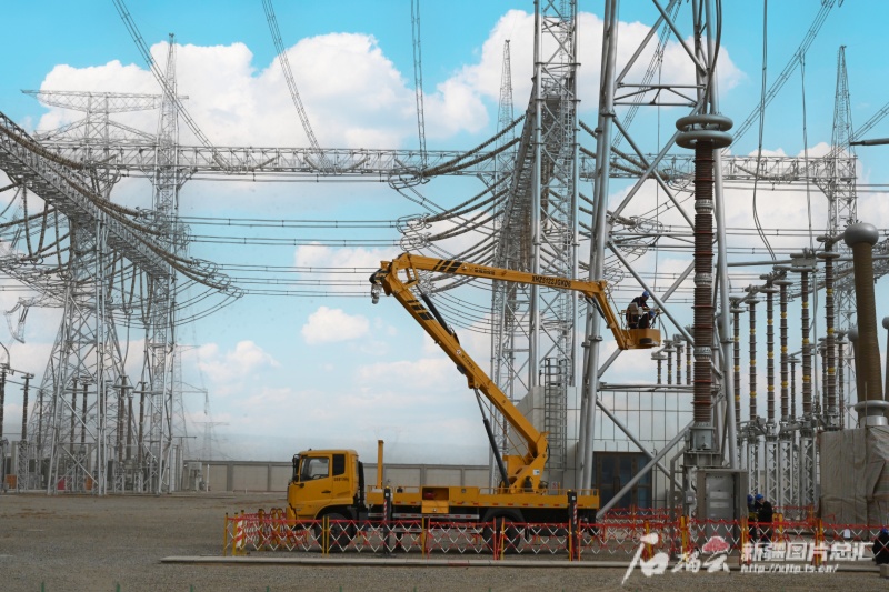 国网新疆电力有限公司超高压分公司员工在750千伏和田变电站检修。陈凯 摄