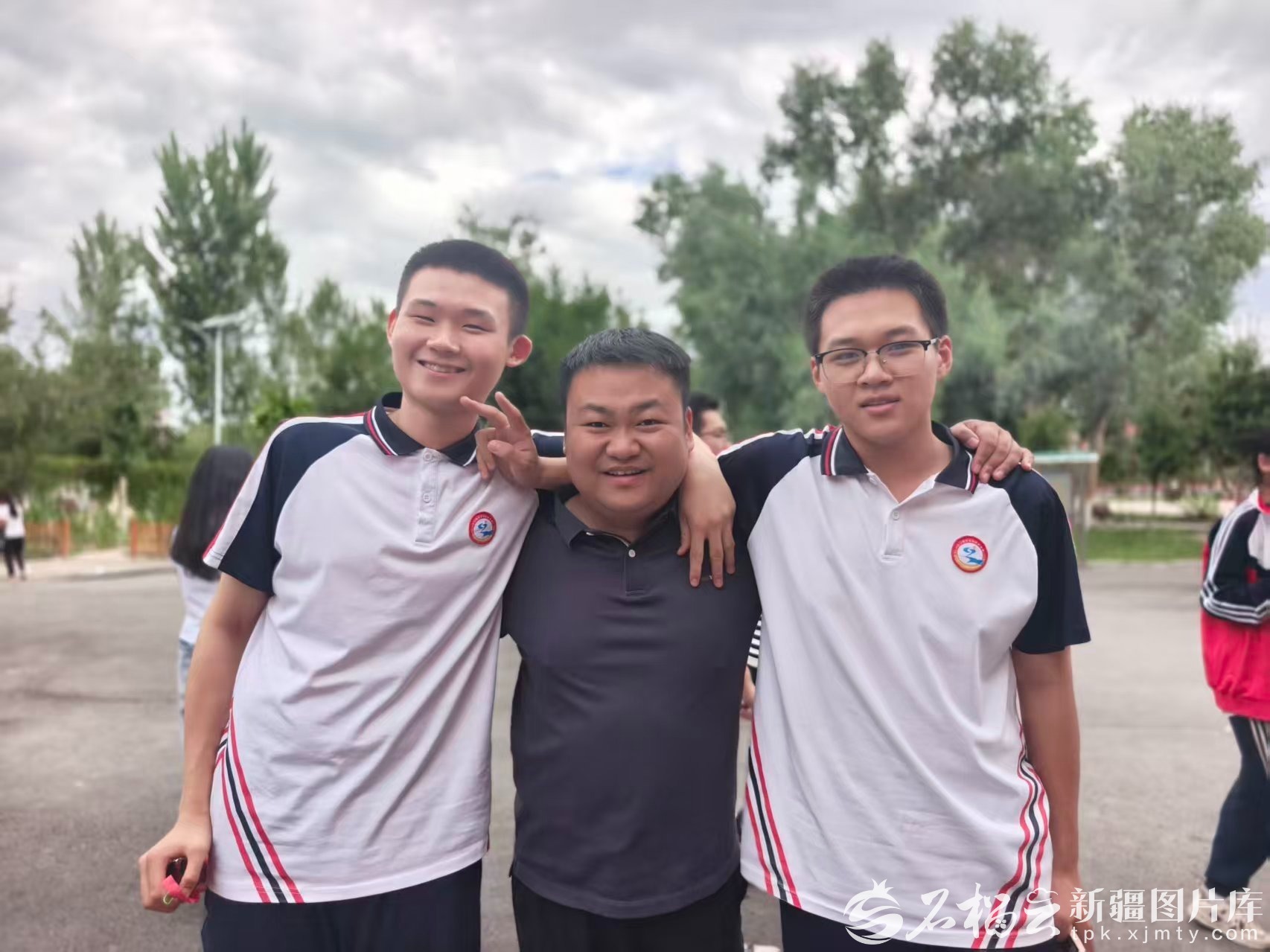 陈伟源(中)与130团中学学生合影。陈伟源供图